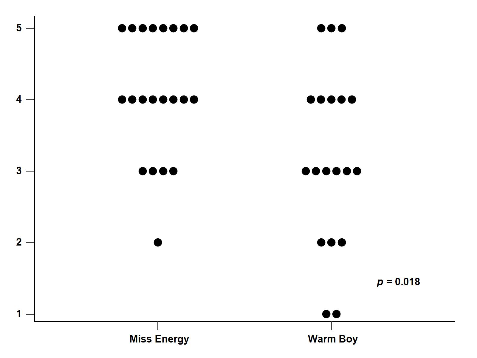這張圖,同學把畫布,也就是工作視窗,放得太寬。這樣的比例會讓兩組的距離變遠,差距在視覺上也會看來變小,並不是很適合,畢竟科學論文還是常強調有差異。建議大約做 4:3 的比例,會比較理想。其他部分問題不大。